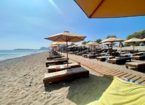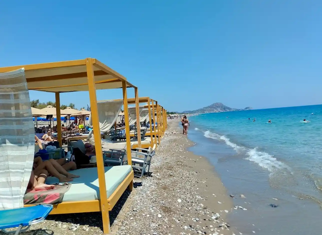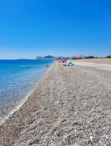 Stretching over 5 kilometers, Afantou Beach offers vast space with crystal-clear, deep, refreshing waters. It's particularly popular among families with young children, thanks to its ample room. While some sections of the beach are well-organized, others are more rustic, but a few spots truly stand out.