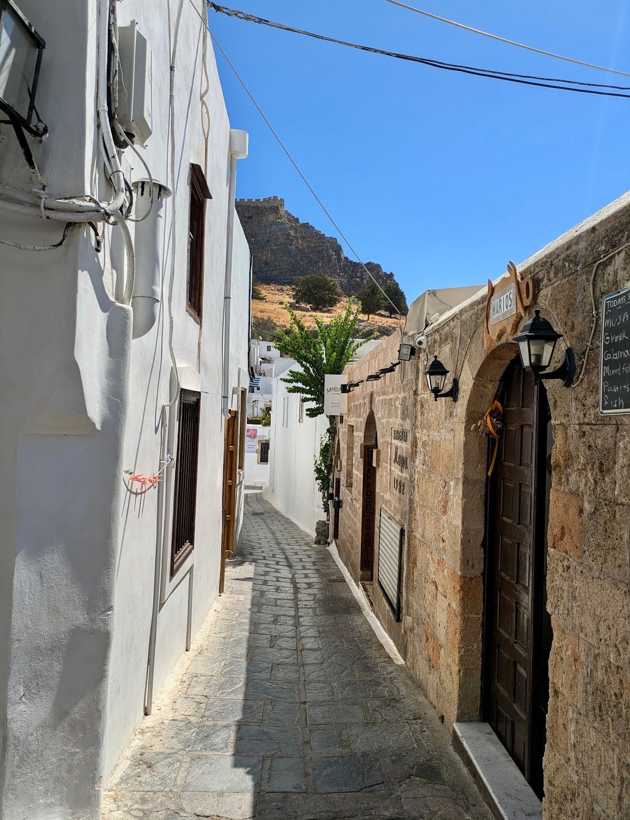 If you plan to visit the Acropolis, try to go early in the morning when it’s cooler. Then, you can spend the rest of the day at the beach! Lindos tends to be a few degrees warmer than the rest of the island, so it’s better to walk around in the afternoon when it’s a bit more comfortable.