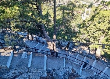 - Wear athletic shoes and bring water and a snack to climb up 300 steps.