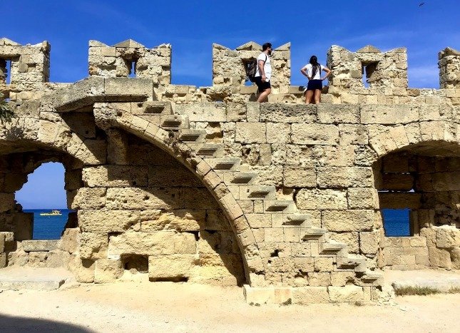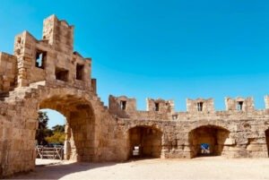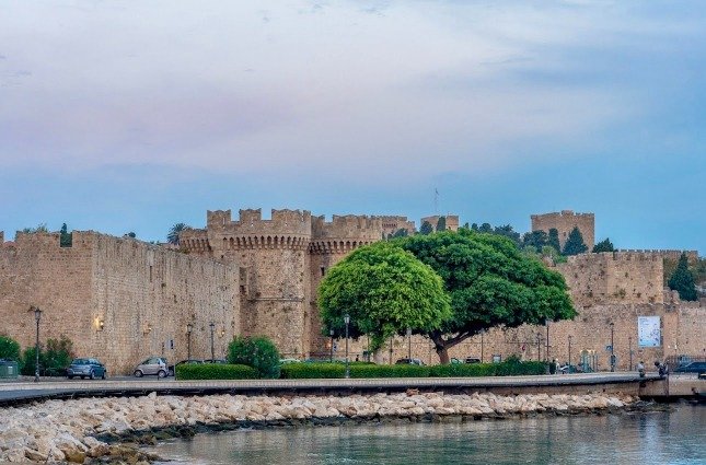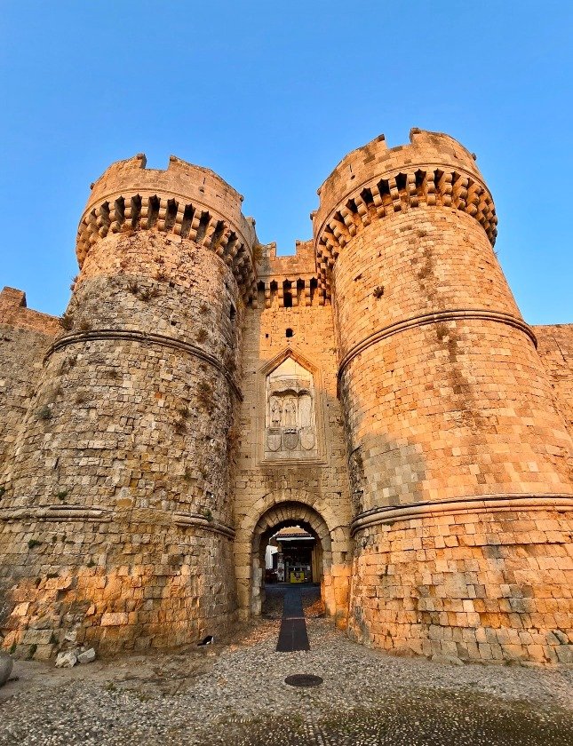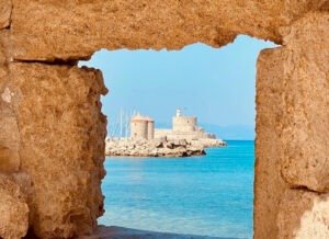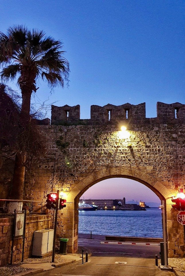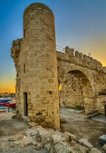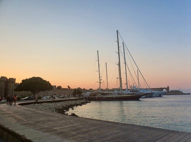 The 📍Sachtouri Coast is one of the most beautiful spots for a stroll! On one side, you’ll find boats and shops lining the coast, offering plenty of choices. On the other side, the towering walls of the medieval city of Rhodes create a stunning backdrop!